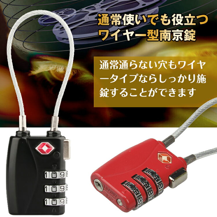 BV(ビーブイ) TSAロック ワイヤーロック 鍵 南京錠 3桁ダイヤル式ロック 旅行用 2個セット