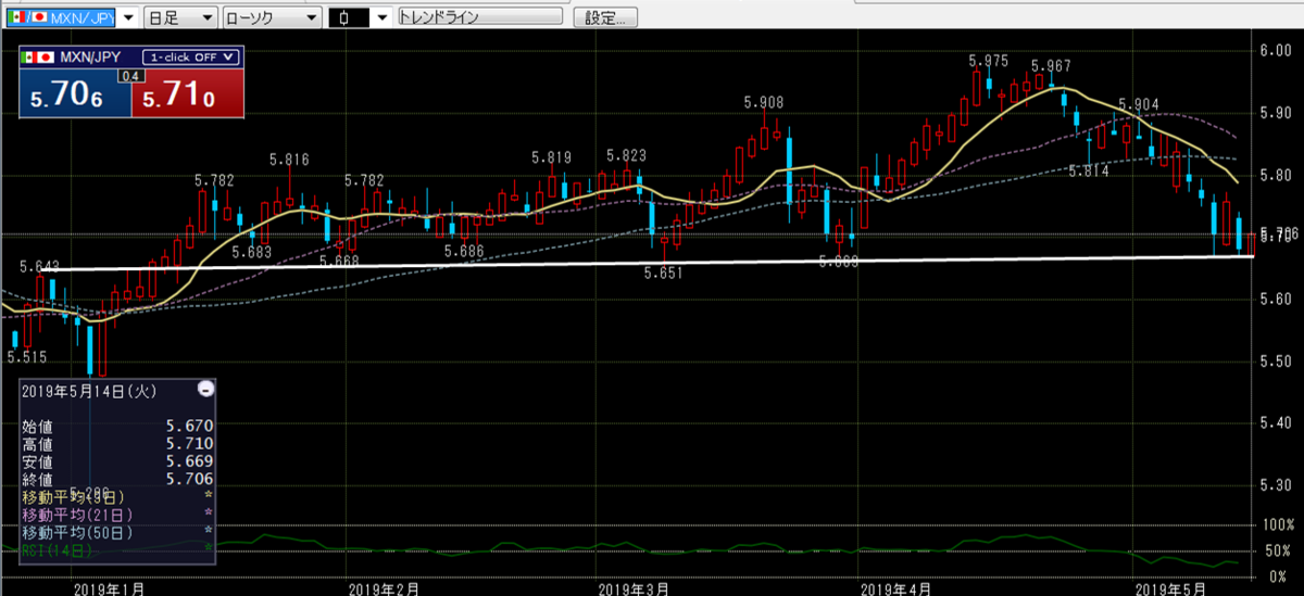 GWが明けて、メキシコペソのチャートを考察してみます。